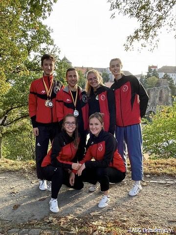 Unser Alexander Schulz räumt sowas von ab! Mit seinem Team um Dustin Seybold (BTU) und Tim Schmorde (TVBB) wird er mit Abstand zur Konkurrenz Deutscher Meister! Doch nicht genug - im Paar mit Elisabeth Arstambaev (BTU) läuft es auch prima und damit erkämpft sich das noch junge Paar Bronze in einer unglaublich starken Gruppe! Alex wollte es auch im Einzel wissen: Mit seiner allerbesten Leistung, die er je auf einem Turnier gezeigt hat, wird er 5. Platz in einer wahnsinnig hochkarätigen Klasse. Alex, wir sind unglaublich stolz auf dich!