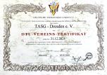 TASG Dresden erhält Qualitätszertifikat Auch in diesem Jahr wurde unserem Verein das Qualitätszertifikat des Bundesfachverbandes verliehen. Damit sind wir der erste und einzige Verein überhaupt in Sachsen, dem dieses Zertifikat durchgängig seit Einführung im Jahr 2013 verliehen wurde.